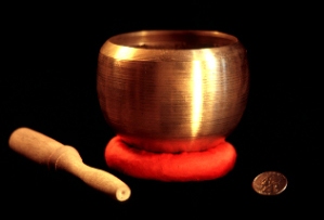 Material: Copper and tin, with silk ring stand and wooden mallet